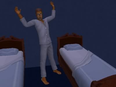 Just as I gave up on getting Amin scared to death and as all his needs were low, I had sent him to bed. He was only in bed for a few seconds when he suddenly got up.