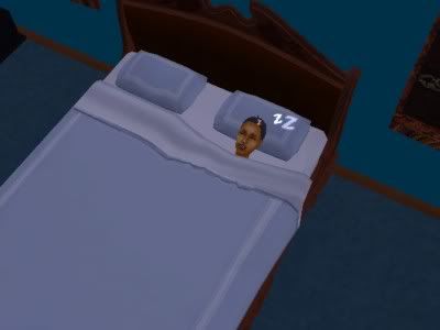 Yvette sleeping (and starving) inside the House of Doom out at the back of the lot.