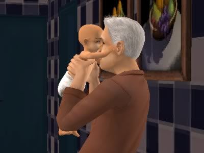 Grandpa James gets up close and personal with his first grandchild, a baby girl Lana Jacobson.