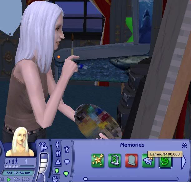 Now you wouldn't say Sam has had a bad day - he got himself fit, woohooed one last time with Vyn, AND he managed to finish off the painting before the Grim showed up.