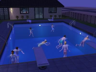 While the couple were inside going at it like bunnies, the rest of the household and the guests took a quick dip in the pool.